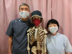 新型コロナウィルスが猛威を振るう中、当院の常勤スタッフ骨(コツ)君にもマスクの着用を義務付けました。