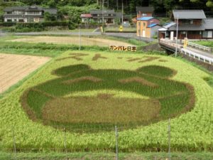 京都府福知山市の田園地帯に マスクをしたクマさん「田んぼアート」発見。