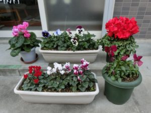 そんな中でも院の入り口では季節の花が「私を見て❣」と健気に咲いています。